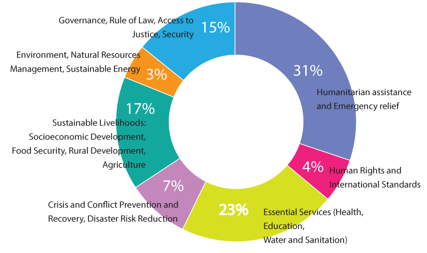 Source: United Nations Brussels office based on European Commission data, 2013.Since 2004, a single financial and administrative framework (FAFA) between the UN and the EU facilitates cooperation and improves the efficiency of the aid delivered.